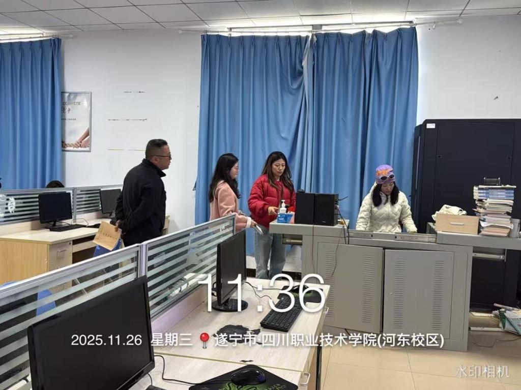 学院成立专项检查组,由院长段伟华、副院长莫黎带队,教学科黄艳、教研室主任廖文静、学生科张坤虹等深入教学一线,通过随堂听课、资料核查、师生访谈等方式开展检查。针对数字电商专业特色,重点核查电子商务技能综合实训课程标准、直播选品与采购课程课件、短视频制作与运营课程教案、商务数据可视化课程课件等核心教学资源,确保内容与行业前沿接轨。