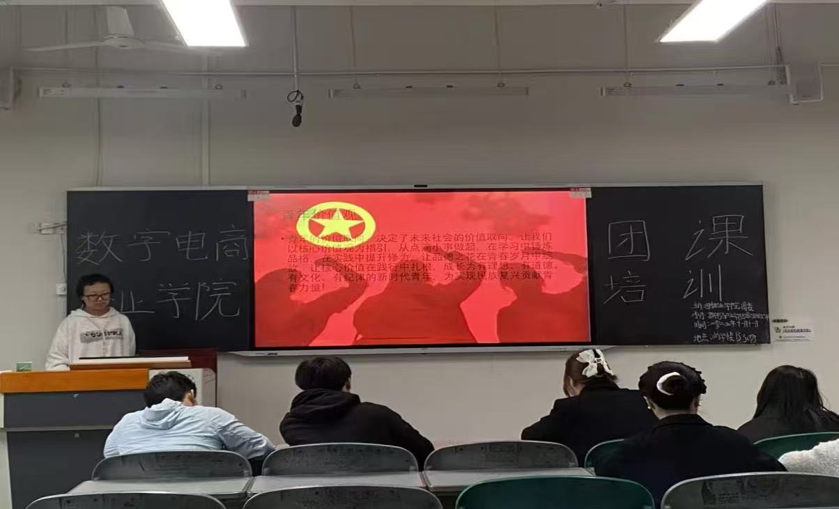 团课结束后,隆重举行新团员入团仪式。新团员面向团旗庄严宣誓,紧握的右拳彰显着传承爱国精神的坚定决心。作为新时代电商学子,他们将以实际行动展现新时代大学生的责任与担当,未来他们将把爱国热情转化为学习动力,在电商专业领域勤学苦练,用数字技能助力产业发展,让青春在强国建设的征程中绽放光彩。