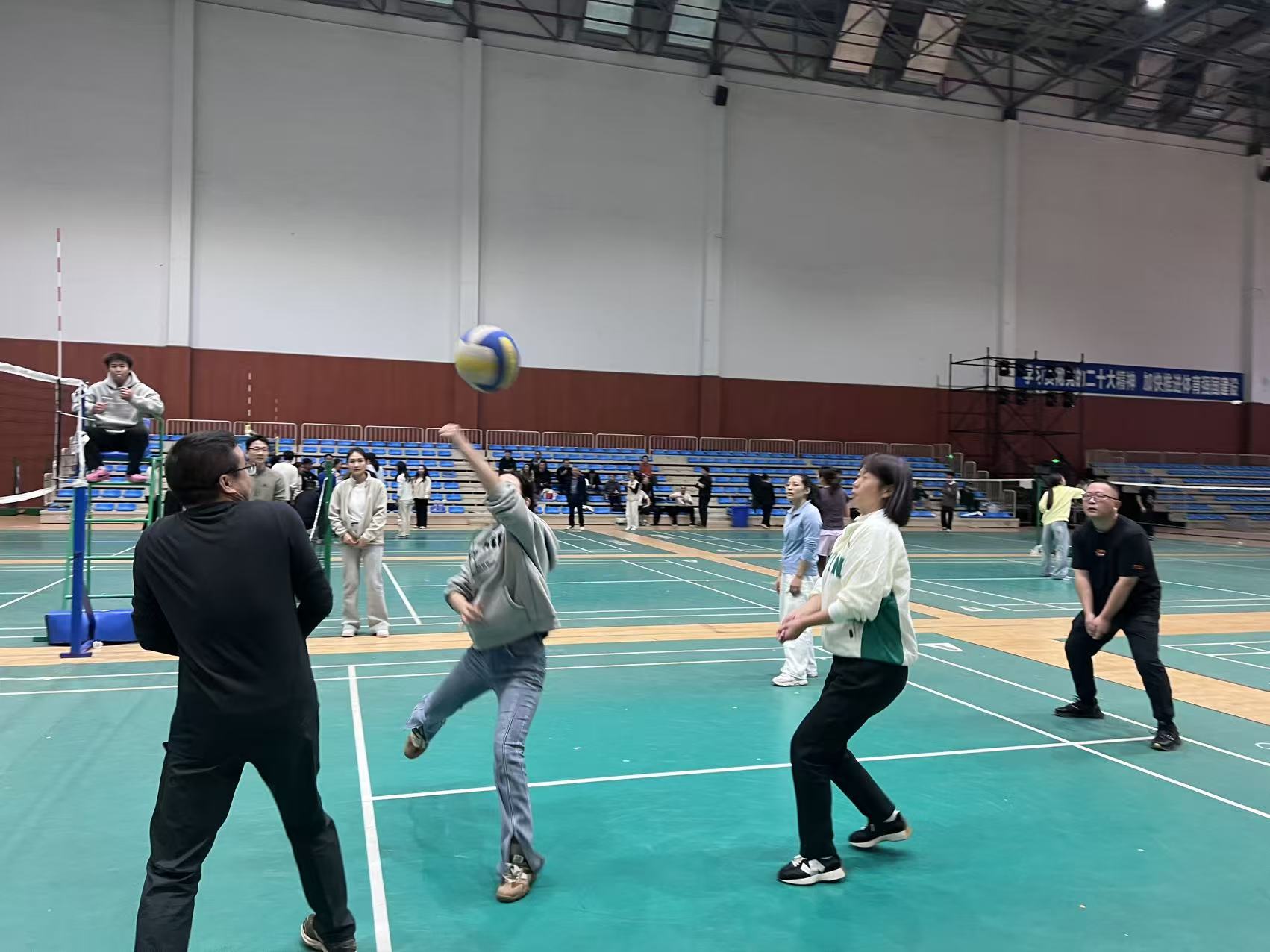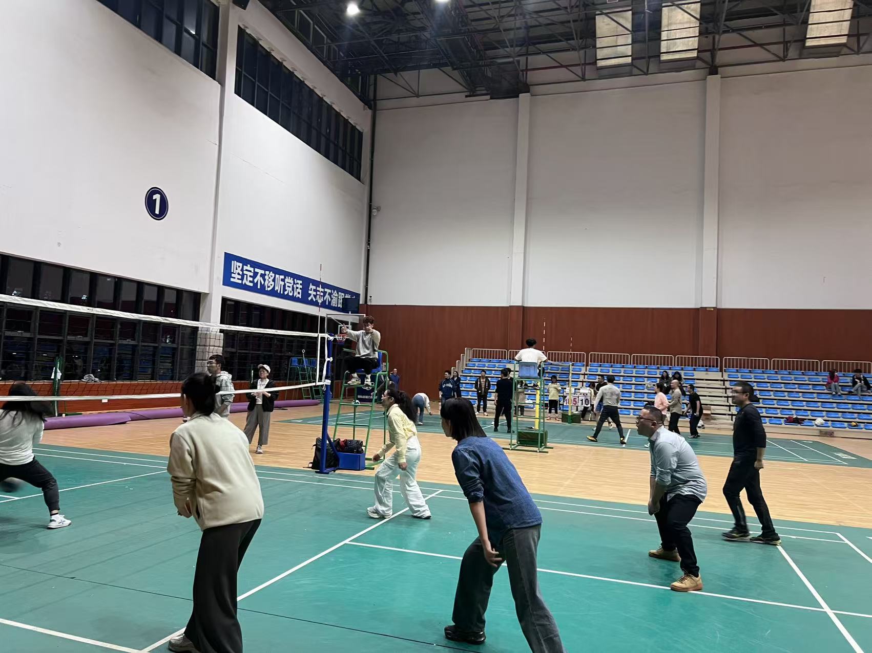 此次比赛旨在搭建教职工交流互动的平台,进一步增强团队凝聚力与向心力,引导广大教职工在运动中放松身心、锤炼意志,以更饱满的热情和昂扬的状态投入到教育教学工作中。赛场上,我院队员们配合默契,发球、传球、扣杀等动作行云流水,充分展现了日常训练的成果。面对强劲对手,大家毫不退缩,凭借顽强的毅力与对手展开激烈对抗,每一分的争夺都凝聚着队员们的汗水与努力。场边拉拉队也热情高涨,加油声、呐喊声此起彼伏,为队员们注入了源源不断的动力。
