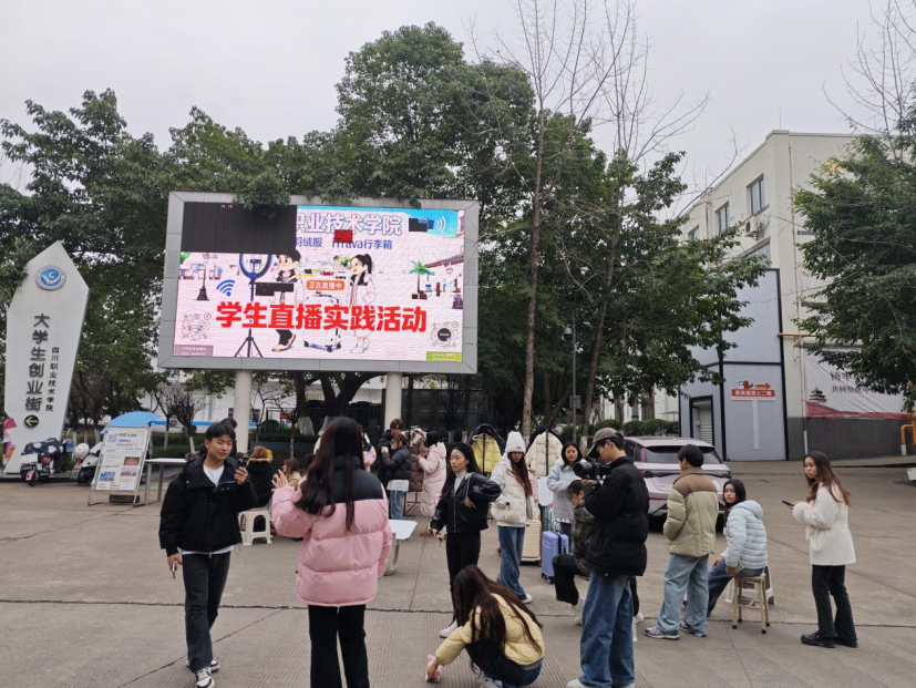 12月26日中午,数字电商产业学院将直播间“搬”至校园创业街,一场集“线上直播+线下体验”于一体的电商实践活动火热开启,吸引众多师生驻足观看、互动参与,成为校园里一道别样的风景线。
